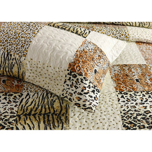 Add an exotic style to your home with this quilt set featuring stripes of various geometric patterns. This 3-piece set includes a soft cotton quilt and 2 matching pillow shams. Use this set to redecorate your master or guest bedroom.