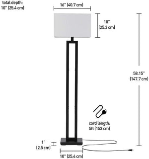 Resting on a geometrically shaped square base, the tall 64-inch frame of this floor lamp is perfectly suited for placement behind a couch or reading chair.