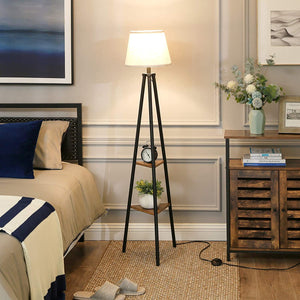 Not your grandmother's floor lamp! Both stylish and functional this Floor Lamp with shelves is a revived take on a classic design. Ideal for displaying home accents while keeping your favorite arm chair well lit, this floor lamp maximizes your floor space and eliminates the need for both a side table and lamp. Its compact size and versatility make it an ideal piece for apartments, dorms, bedrooms or tight corners.